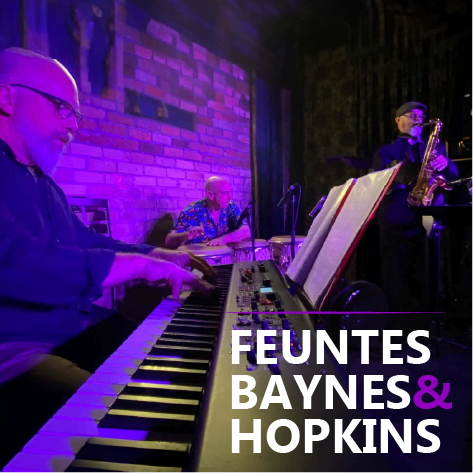 Feuntes Baynes and Hopkins is a Latin jazz trio featuring Miguel Feuntes (percussion), Dr Mark Baynes (piano/keys) and Tim Hopkins (saxophone/flute). Recent performances include the Auckland Arts Festival, Ponsonby Social Club and Crown Range Lounge in Parnell. Blending Afro-Cuban jazz, mambo, cha-cha-cha, boogaloo and Latin soul, the trio performs music by artists including Cal Tjader, Tito Puente, Joe Cuba and many more, alongside Latin jazz classics such as Para Ti, Almendra and Alonzo.